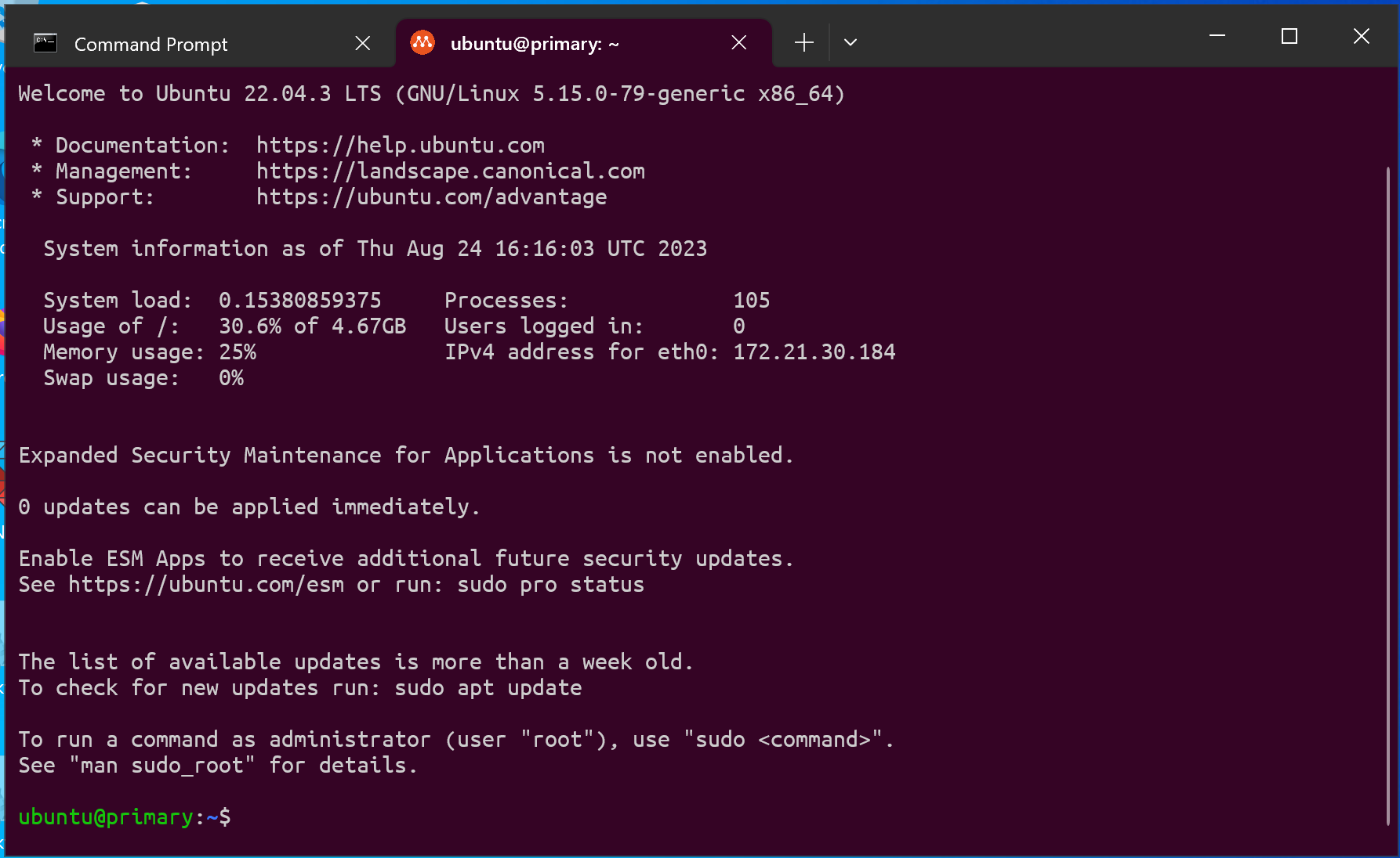 Currently, Multipass can add a profile to Windows Terminal for the Primary instance. When you open a Windows Terminal tab with this profile, you’ll automatically find yourself in a primary instance shell. Multipass automatically starts or launches the primary instance if needed.